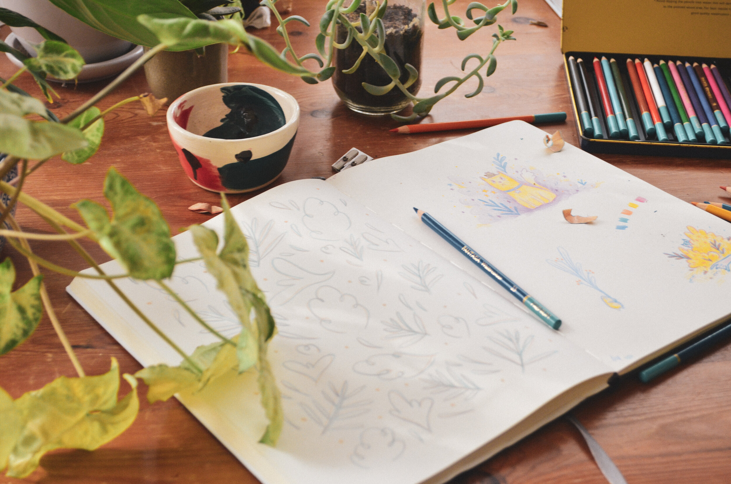 I love having a routine around my drawing that makes it something to look forward to even if I don’t feel creative. I like to make a cup of tea, put on some music or a podcast, spend some time daydreaming and then I feel like I’m ready to draw.